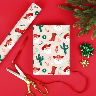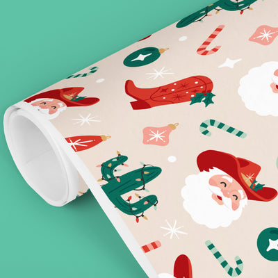 Bring the holiday spirit to life with our fun, Cowboy Christmas Wrapping Paper! Designed on high-quality matte paper, each roll wraps up to 3 shirt boxes, adding joy to every gift. Made in the USA, this festive paper ensures your gifts look as special as the season.